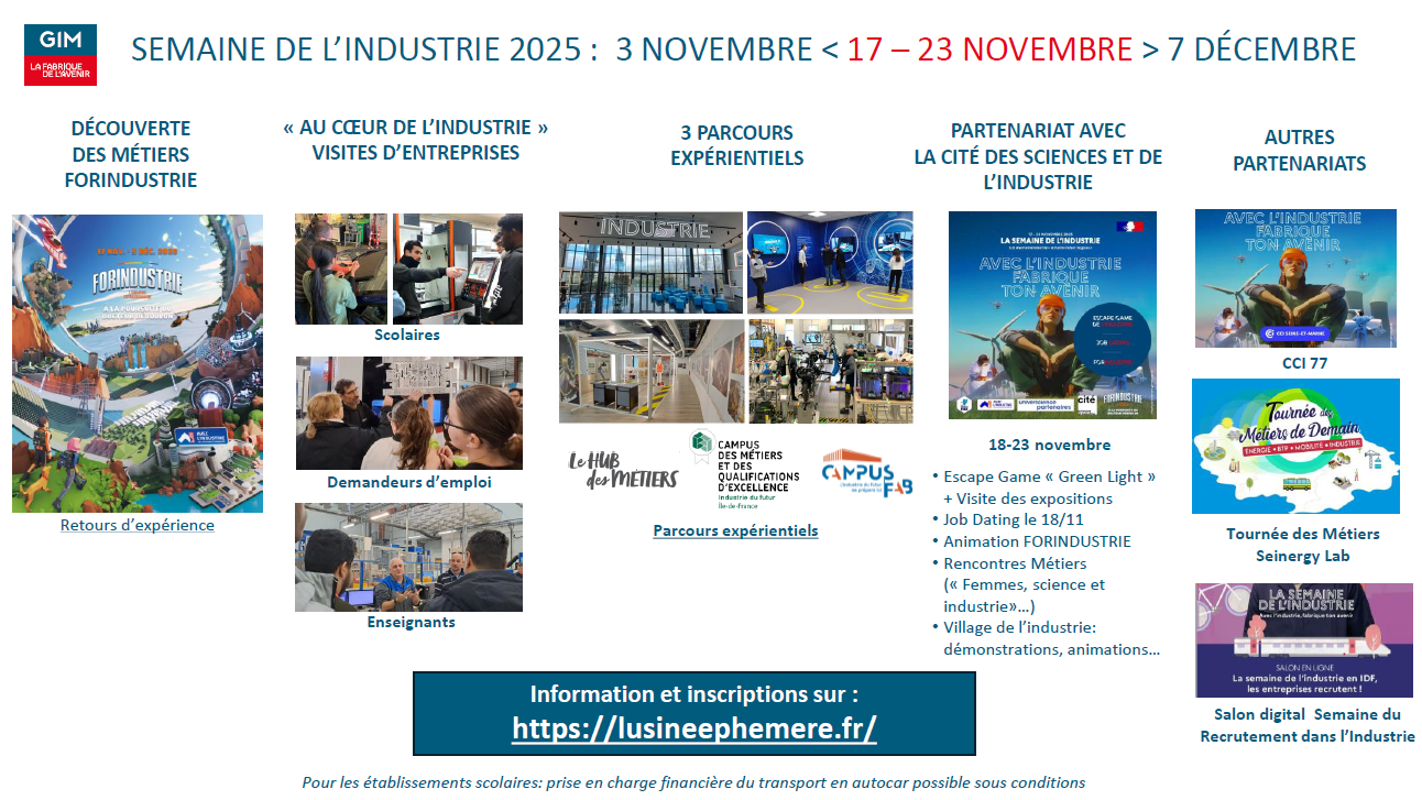 A l’occasion de la 14ème édition de la Semaine de l’Industrie, le Groupe des Industries Métallurgiques (GIM) invite les classes de collèges et de lycées à découvrir l’industrie et ses métiers à travers plusieurs dispositifs :